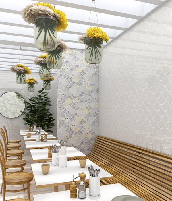 La composition des motifs ouvre d’infinies possibilités créatives. Un dessin unique peut habiller intégralement un espace, pour façonner une ambiance forte. L’alternance de carreaux unis et décorés permet de doser l’intensité. En bordures ou en frises, ils structurent la surface et créent des transitions élégantes entre les différents matériaux.