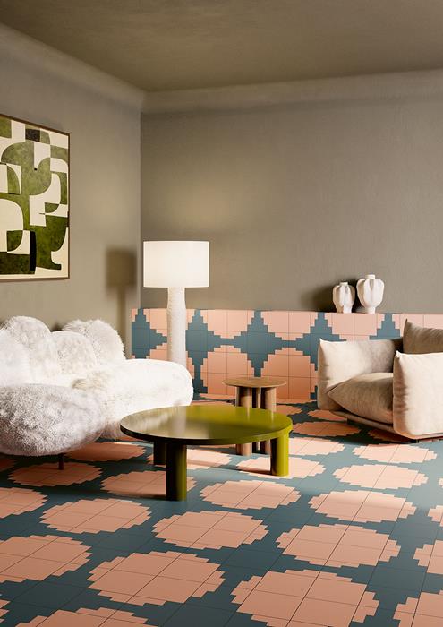 Le carrelage à motifs est un outil de mise en scène idéal pour structurer l’espace ou souligner une zone spécifique.