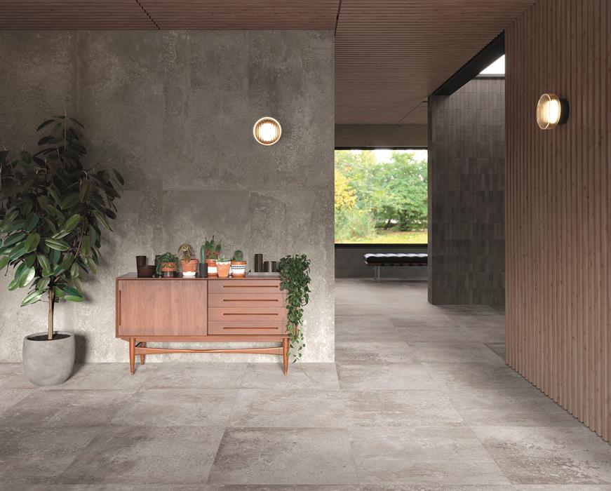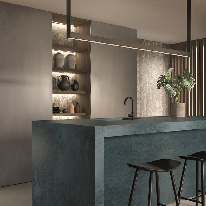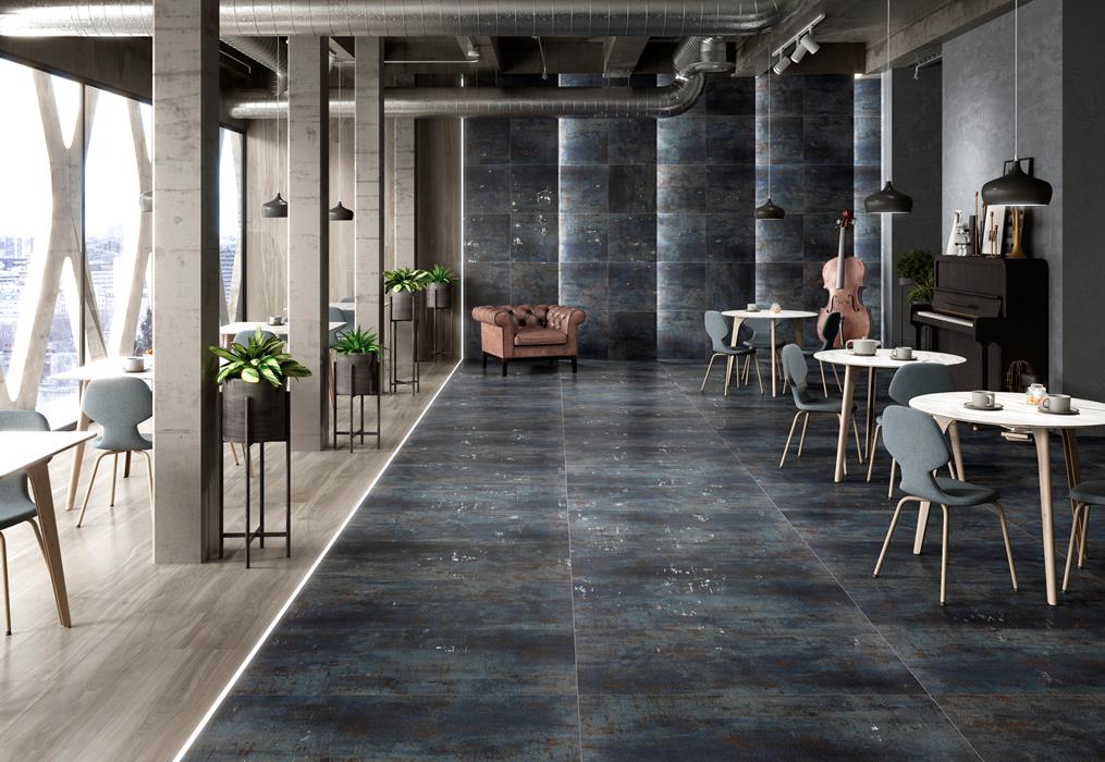 Les carrelages effet métal trouvent facilement leur place dans des environnements contemporains, professionnels ou résidentiels.