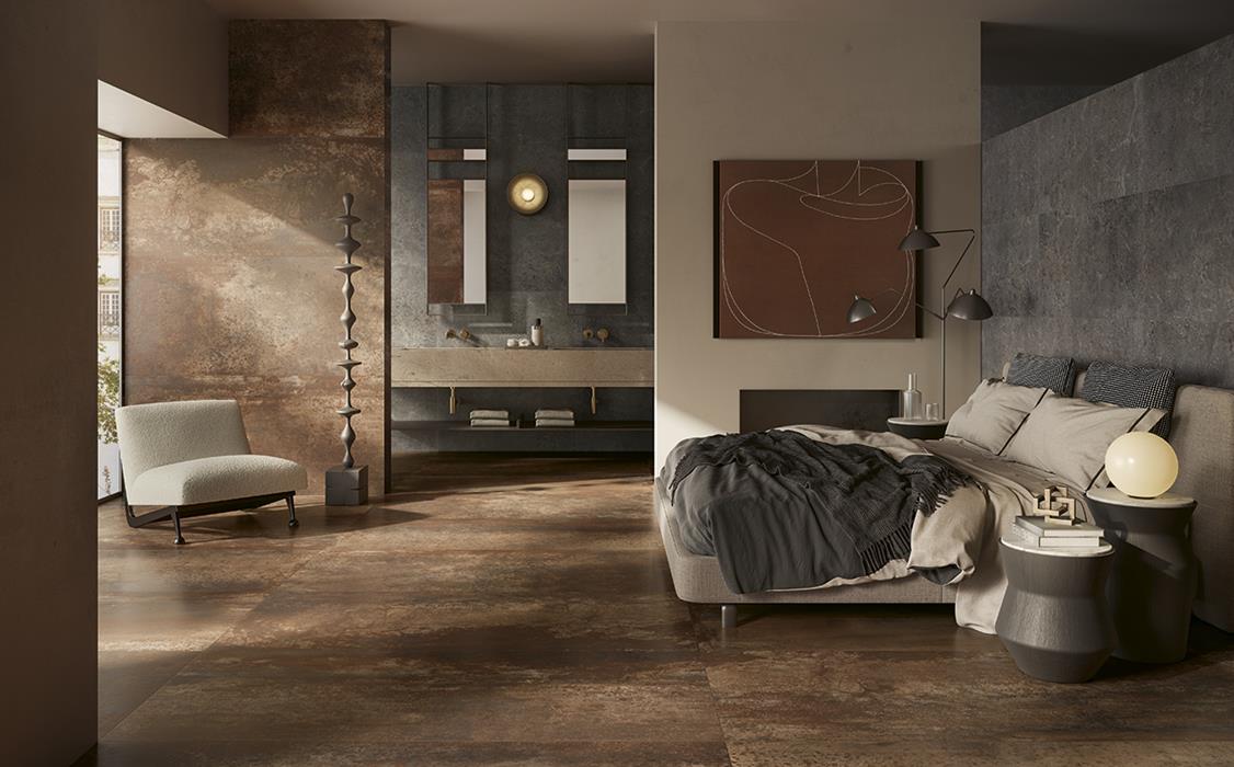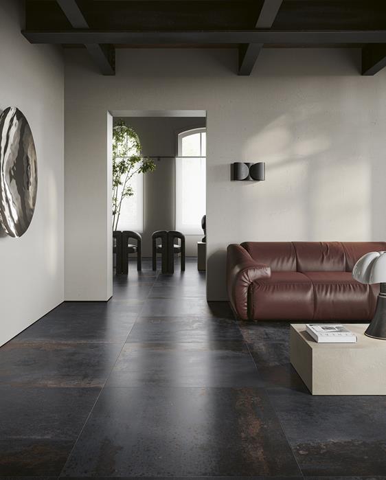 Inspiré des matières industrielles comme l’acier, le zinc, le cuivre ou encore le corten, le carrelage effet métal apporte une touche unique et avant-gardiste à vos espaces. Il reproduit fidèlement les nuances, les reflets, les oxydations et même les irrégularités propres au métal vieilli.