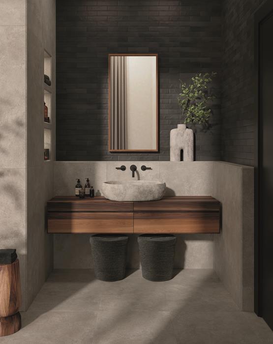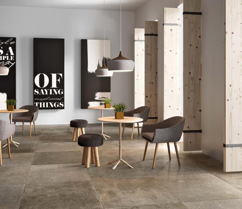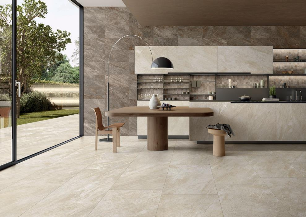 Les carrelages effet pierre et leur esthétisme minéral trouvent leur place partout : du séjour à la terrasse, en passant par la salle de bain et la cuisine.