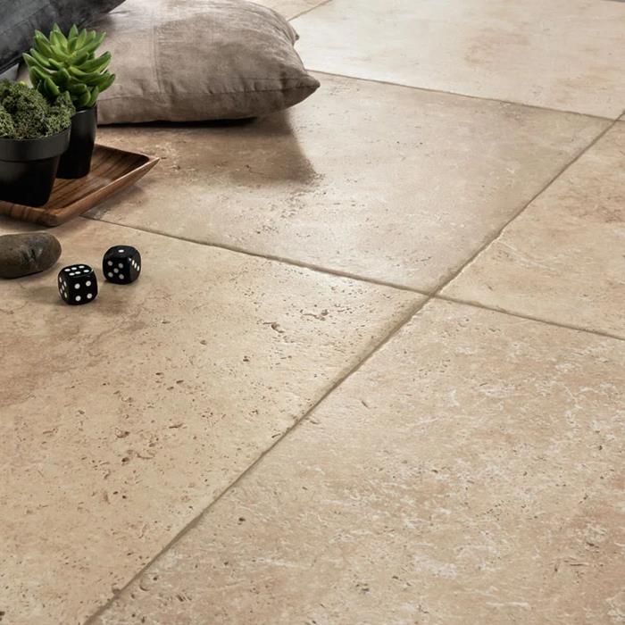 L’entretien du carrelage effet travertin, calcaire ou ardoise est bien plus simple que celui à la pierre naturelle. Pas de traitement hydrofuge à renouveler, pas de risque de taches indélébiles… Un nettoyage des sols classique suffit.