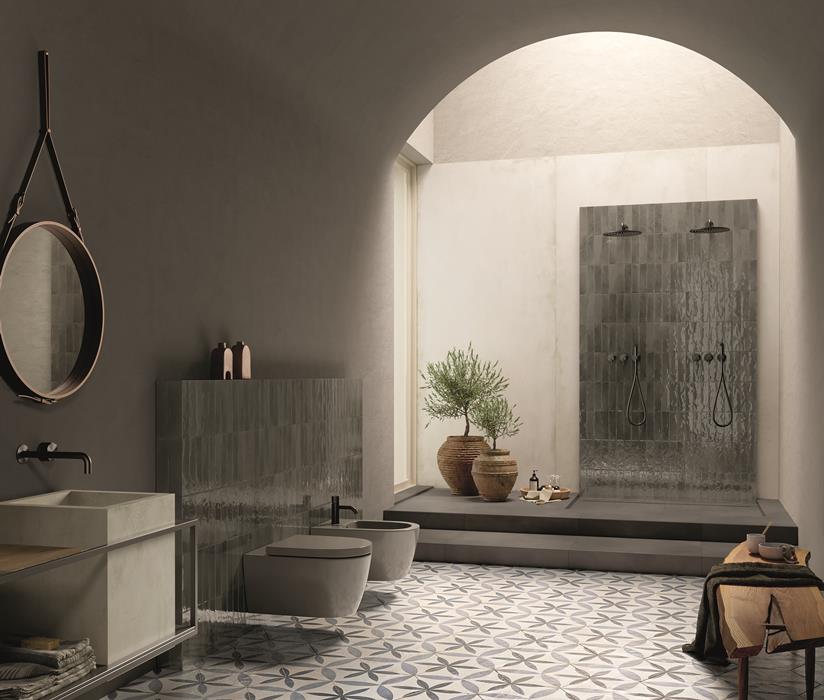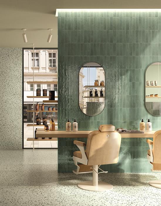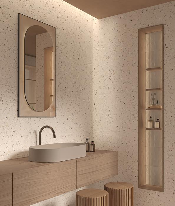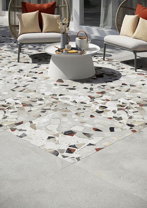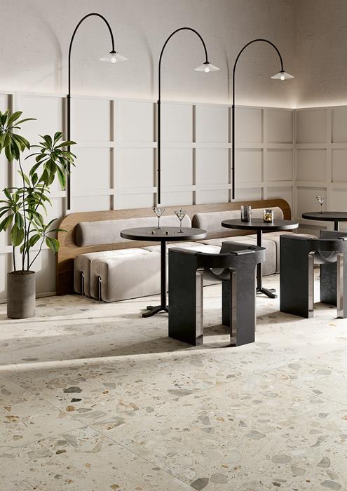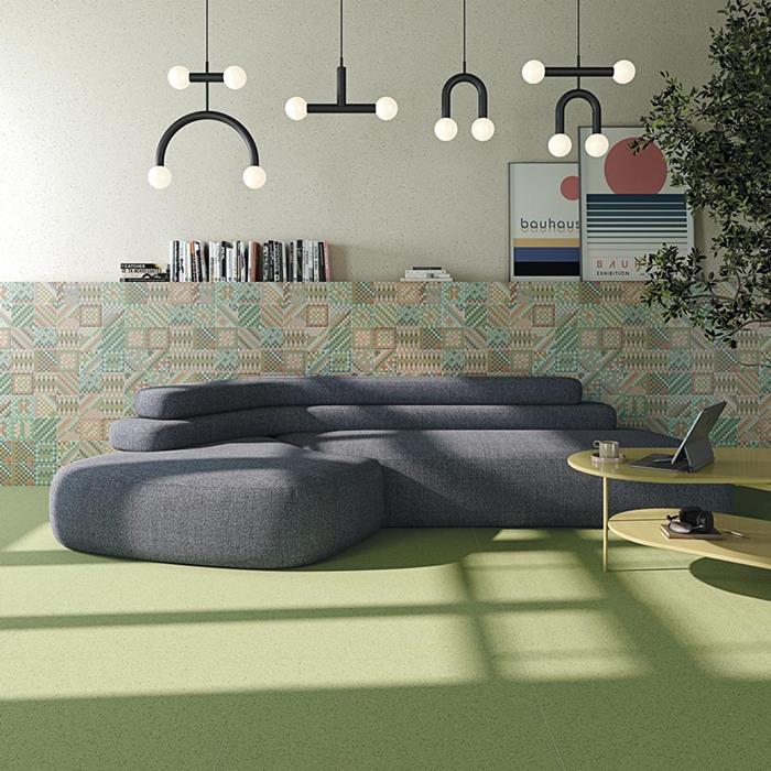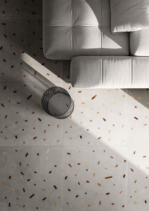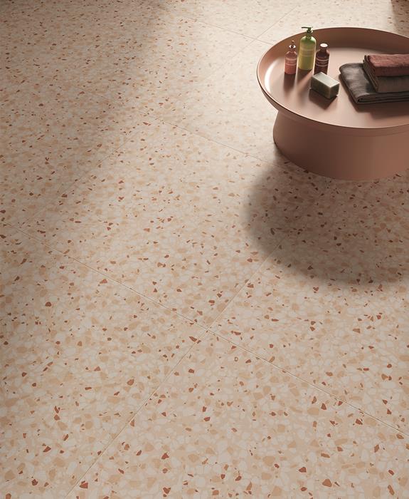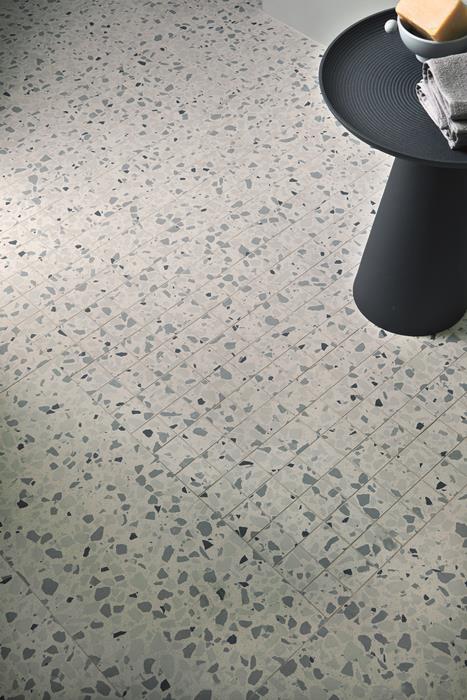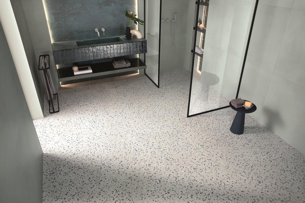 La grande polyvalence du carrelage effet terrazzo lui permet d’habiller toutes les surfaces, avec style et originalité.