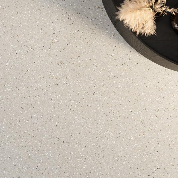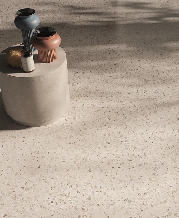 Après avoir traversé les époques, la richesse visuelle de ce style s’impose désormais comme une référence de la décoration contemporaine. Nos carrelages effet terrazzo restituent fidèlement la complexité de cet effet moucheté si particulier, avec ses reflets irréguliers et multicolores.