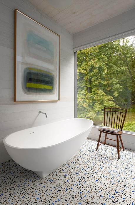 Le carrelage imitant le terrazzo donne instantanément du caractère à une pièce. C’est un visuel fort, graphique et coloré, capable de sublimer un intérieur minimaliste comme un décor plus audacieux.